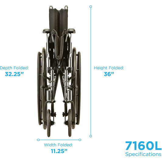 Hammertone Wheelchair - 16" Lightweight With Flip Back Detachable Arms & Swing Away Footrest 7160L