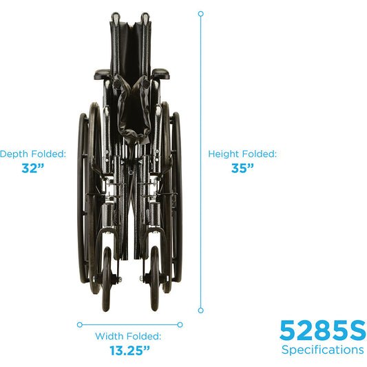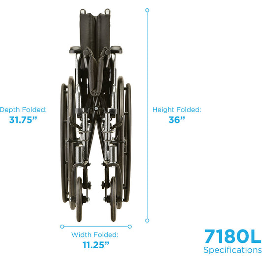 Hammertone Wheelchair - 18" Lightweight With Flip Back Detachable Arms & Swing Away Footrest 7180L